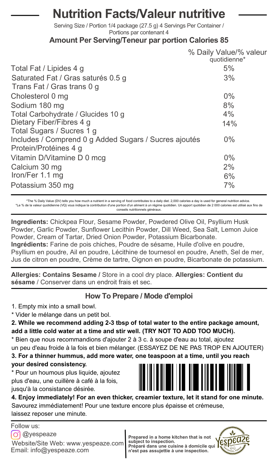 Bright, zesty, and ready in 30 seconds. Our Lemon Dill Tahini dried hummus is your new favorite healthy snack. We blend real lemon juice powder and premium dried dill with our classic sesame tahini and chickpea base. Just add water for a fresh, herbaceous dip anytime, anywhere.